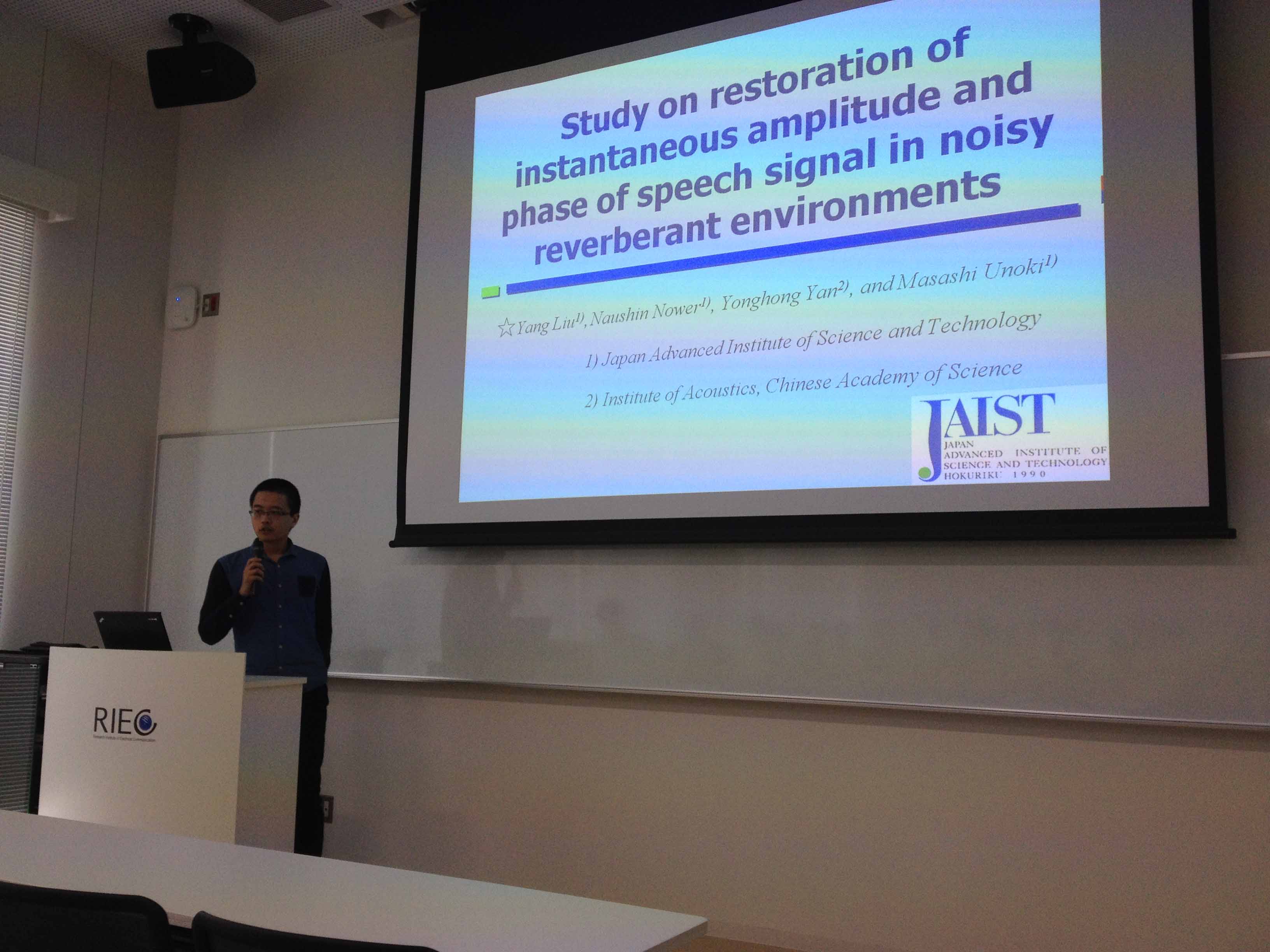 ★聴覚・電気研究会@東北大にてLiuくんが研究発表しました(2015年8月3日).
