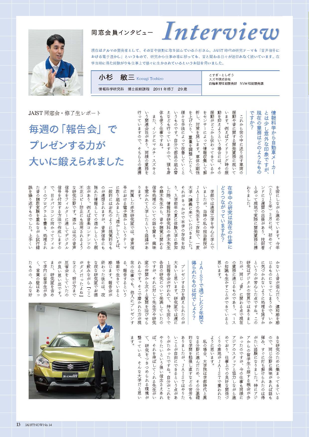 ★JAIST NOW (No. 11)にOBの小杉くんの記事が掲載されました(2015年11月20日).