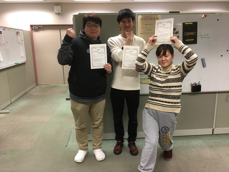 ★JHESで発表した学生3名が日本音響学会北陸支部・優秀論文発表賞を受賞しました(2018年11月5日).