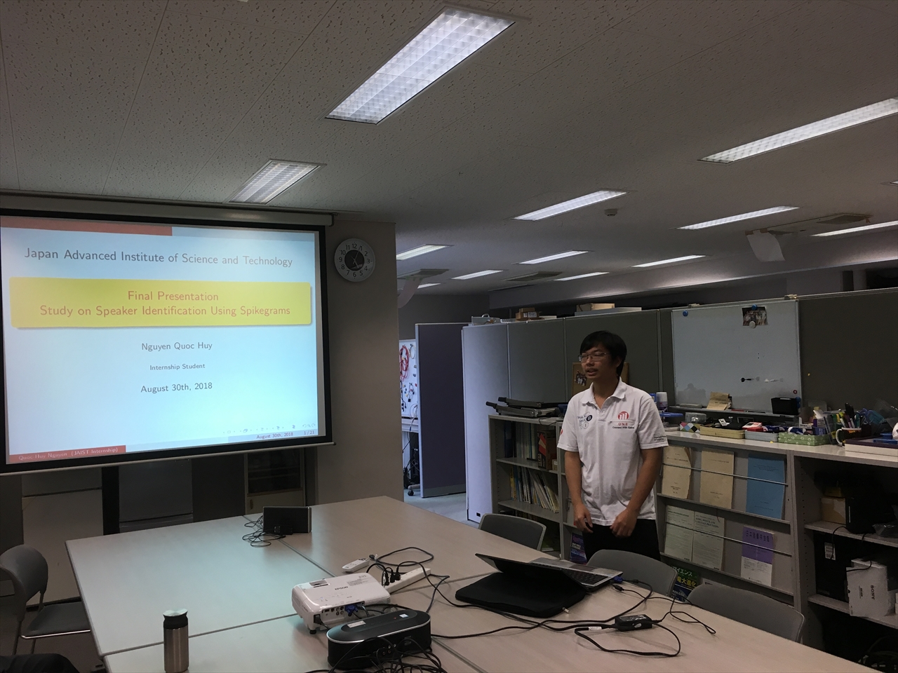 いたHuyくんの成果発表会を行いました.9週間の実習お疲れさまでした(2018年8月30日).