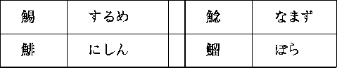 >> │ 鯣 │ するめ ││ 鯰 │ なまず │