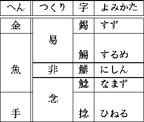 >> |へん||つくり| 字 | よみかた |