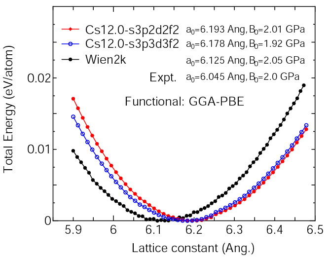 the Murnaghan equation of state. The difference between Cs12.0-s3p2d2f2 and Cs12.0-s3p3d3f2