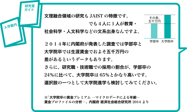 「大学院進学説明会に行きたい」、「○○先生の研究室を訪問したい」けれど予定が合わない、開催地が遠い…という方へ。参加人数2名以上で、全国どこでも開催希望場所にて「どこでも大学院進学相談会」を行います。本学教員が、大学概要・研究領域の説明をします。 どこでも大学院進学相談会 > トップページへ戻る >