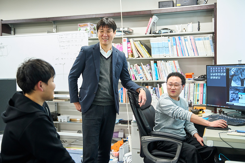また、研究は一人で完結するものではありません。研究室全体で進捗を共有し、議論する場を設けることで、互いに刺激を受けながら研究を進めています。最初は経験がなくても、試行錯誤を繰り返す中で成長していく学生を多く見てきました。研究を通して、問題解決力を身につけてほしいと考えています。
